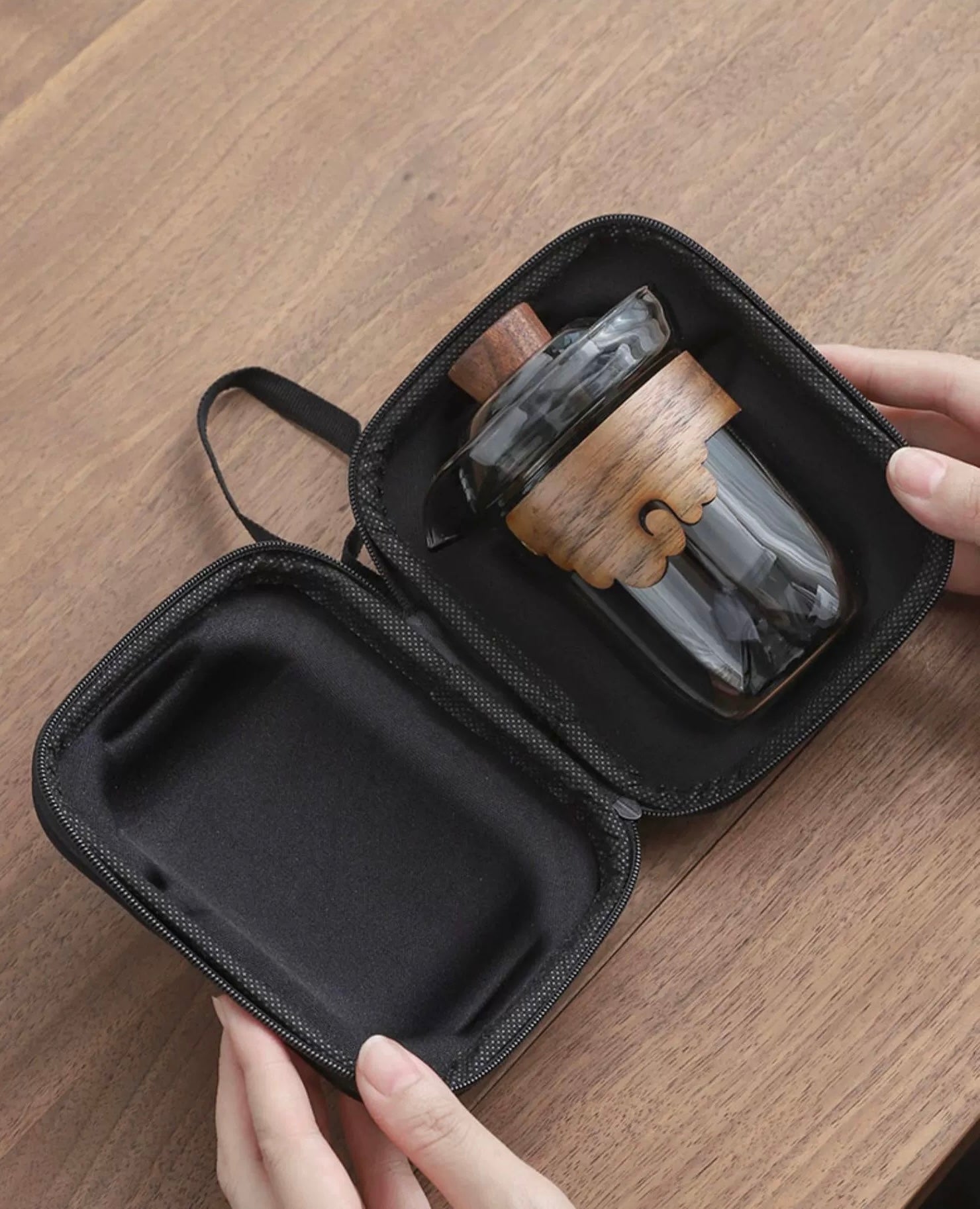 Tea travel set glas/wood